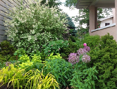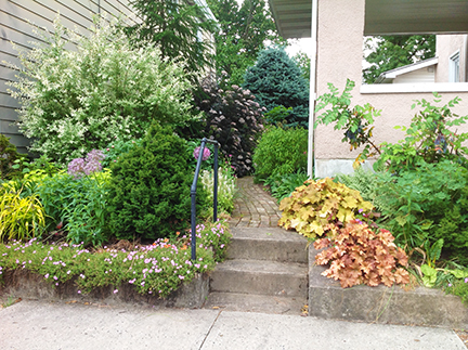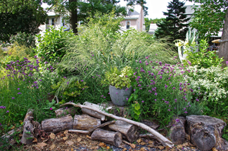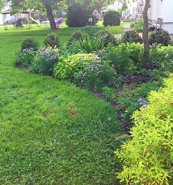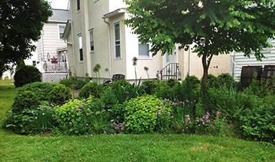 Quakertown, PA is transformed with low maintenance, drought tolerant plants which provide color, texture, and beauty throughout the seasons. Rain barrels, a rain garden, a vegetable bed, and a multitude of native trees, shrubs, vines, and perennials inhabit a back yard with abundant color, habitat, and seating areas.